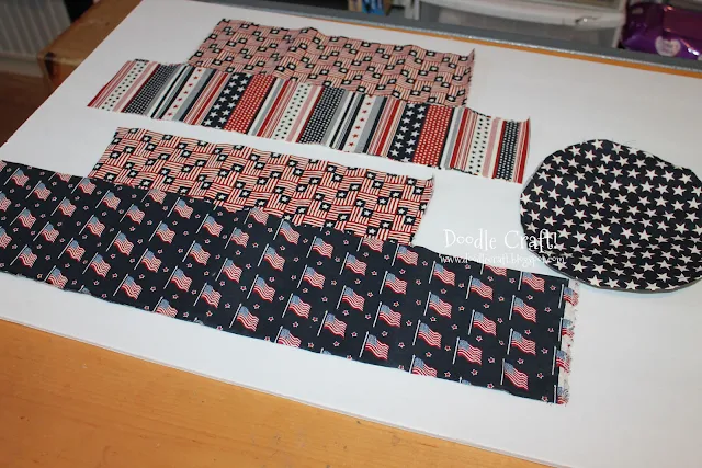 So you need to cut strips of fabric that are longer than the band (or 2 pieces) for the inside of the bucket and the 2 pieces for the outside of the bucket.